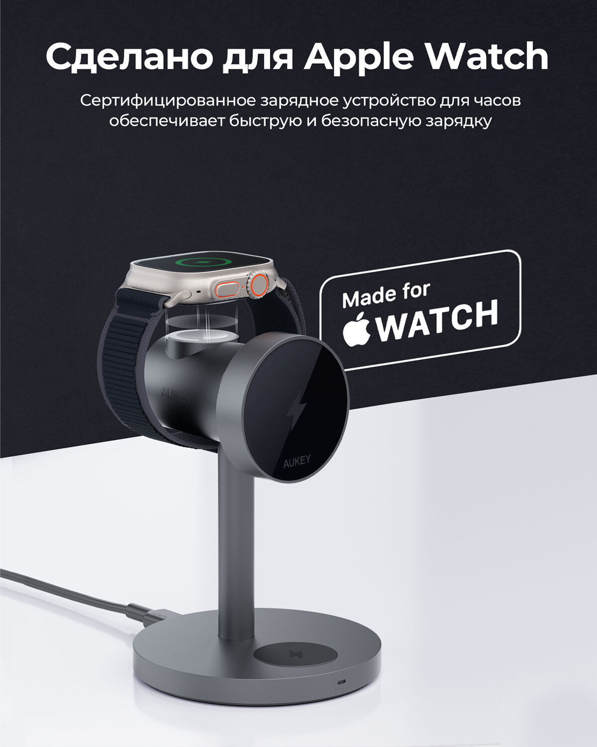 10 цен на Беспроводное зарядное устройство Aukey, MagFusion Qi2, 3 в 1, (LC-MC311)