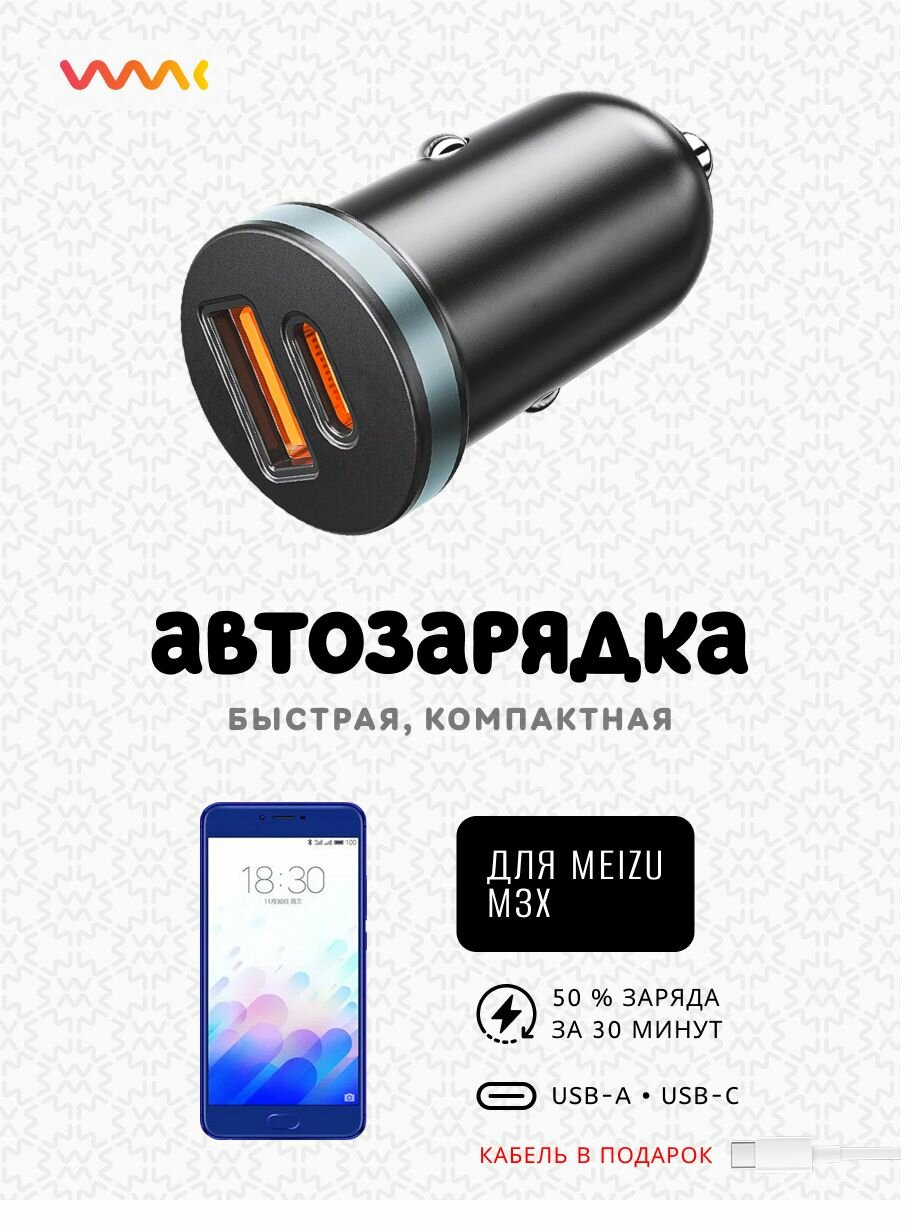 Быстрая автомобильная зарядка в прикуриватель для телефона Meizu M3X (кабель в комплекте) информация: