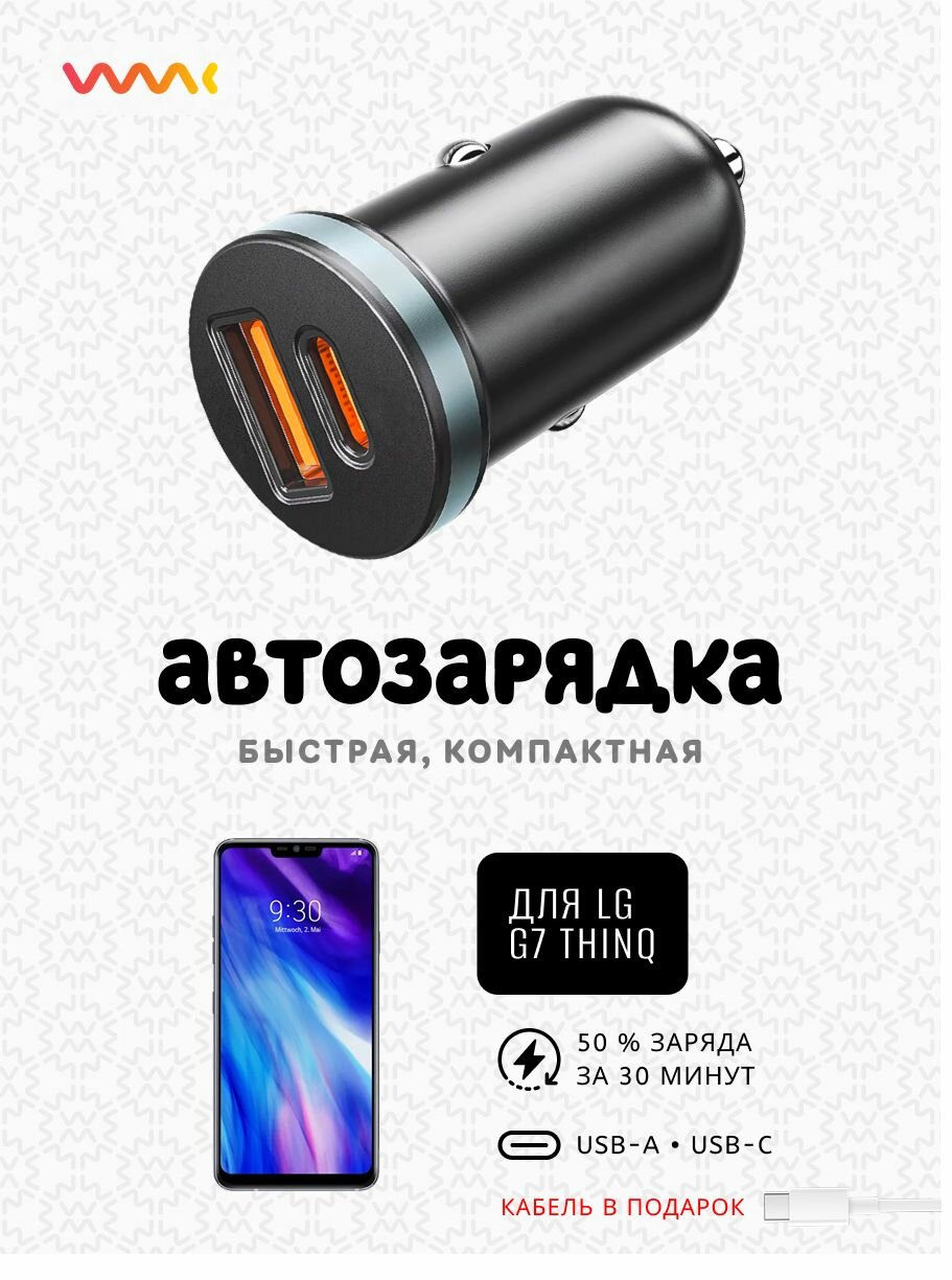Быстрая автомобильная зарядка в прикуриватель для телефона LG G7 ThinQ (кабель в комплекте) информация: