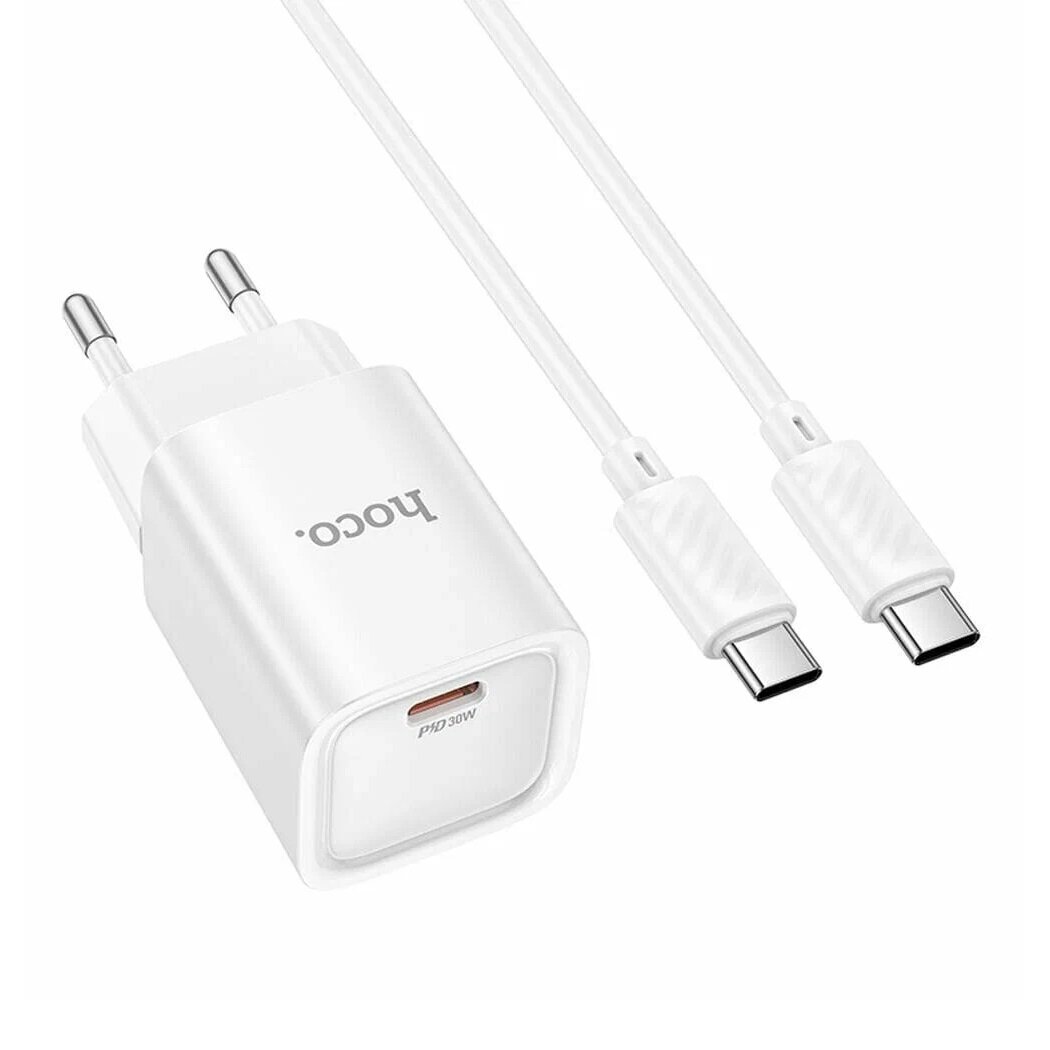 10 цен на Сетевое зарядное устройство для быстрой зарядки HOCO C148A Charm 30W, Type-C QC3.0/PD30W, кабель Type-C to Type-C, белый