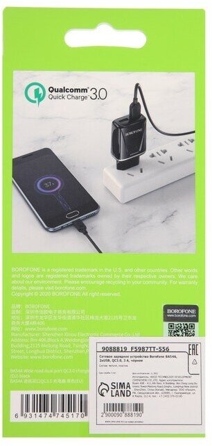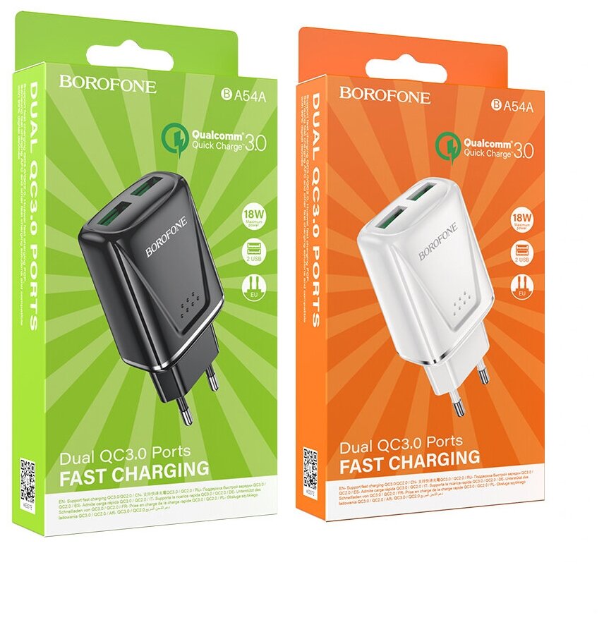 Отзывы на Сетевое зарядное устройство Borofone Ba54a, 2xUSB, Qc3.0, 3 А, чёрное Borofone 9088819