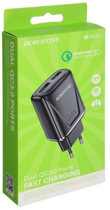 Сетевое зарядное устройство Borofone Ba54a, 2xUSB, Qc3.0, 3 А, чёрное Borofone 9088819 информация: