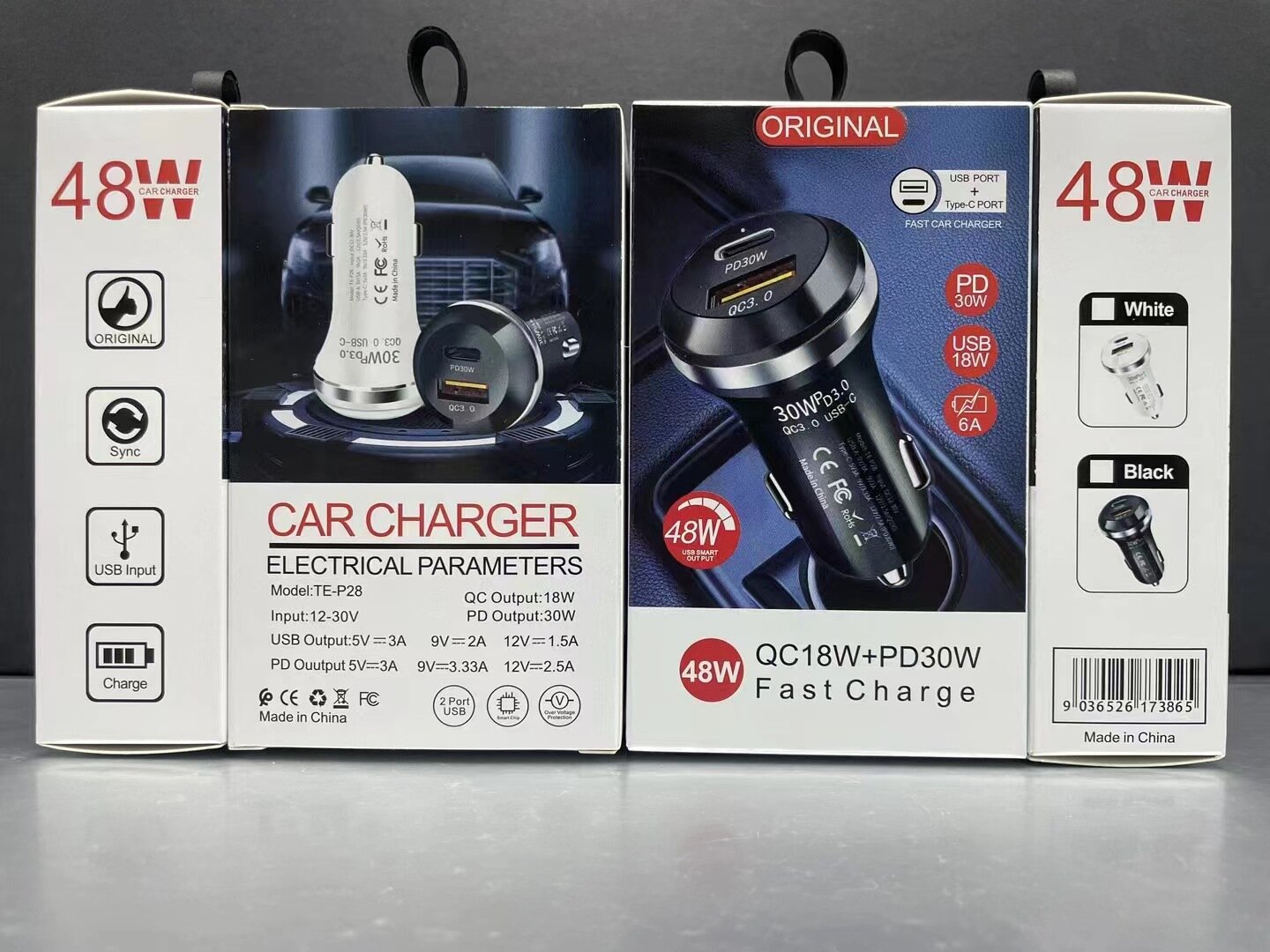 Автомобильное зарядное устройство, 48Вт, USB+PD, быстрая зарядка, для двух устройств информация: