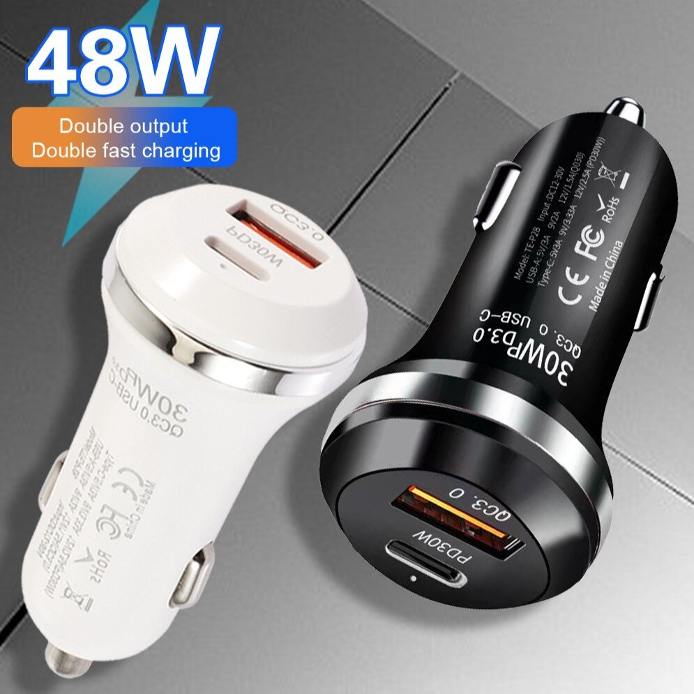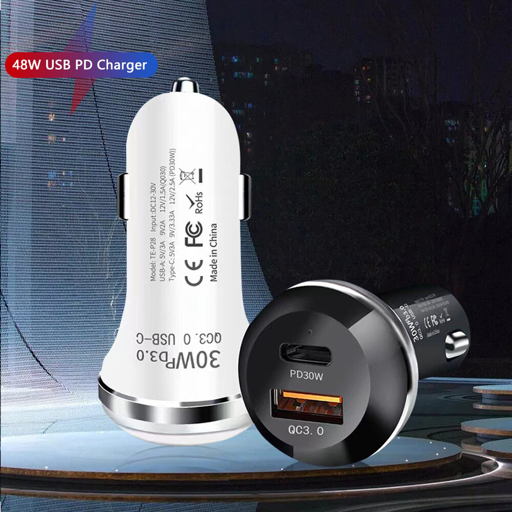 10 цен на Автомобильное зарядное устройство, 48Вт, USB+PD, быстрая зарядка, черный, голый металл