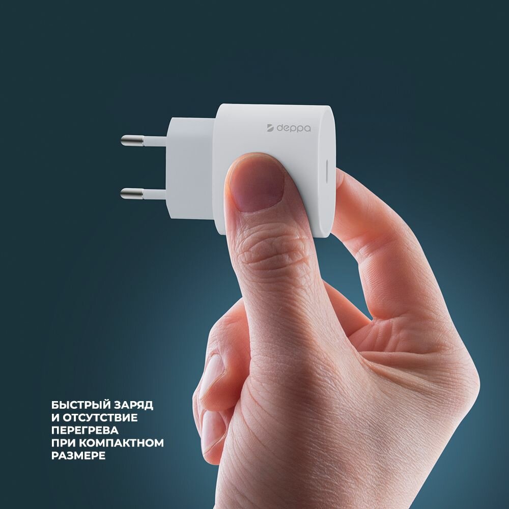 Сетевое зарядное устройство Original Wall Charger Deppa USB-C, быстрая зарядка, PD 3.0 , QC, PPS 20Вт, белый Deppa 11448 информация: