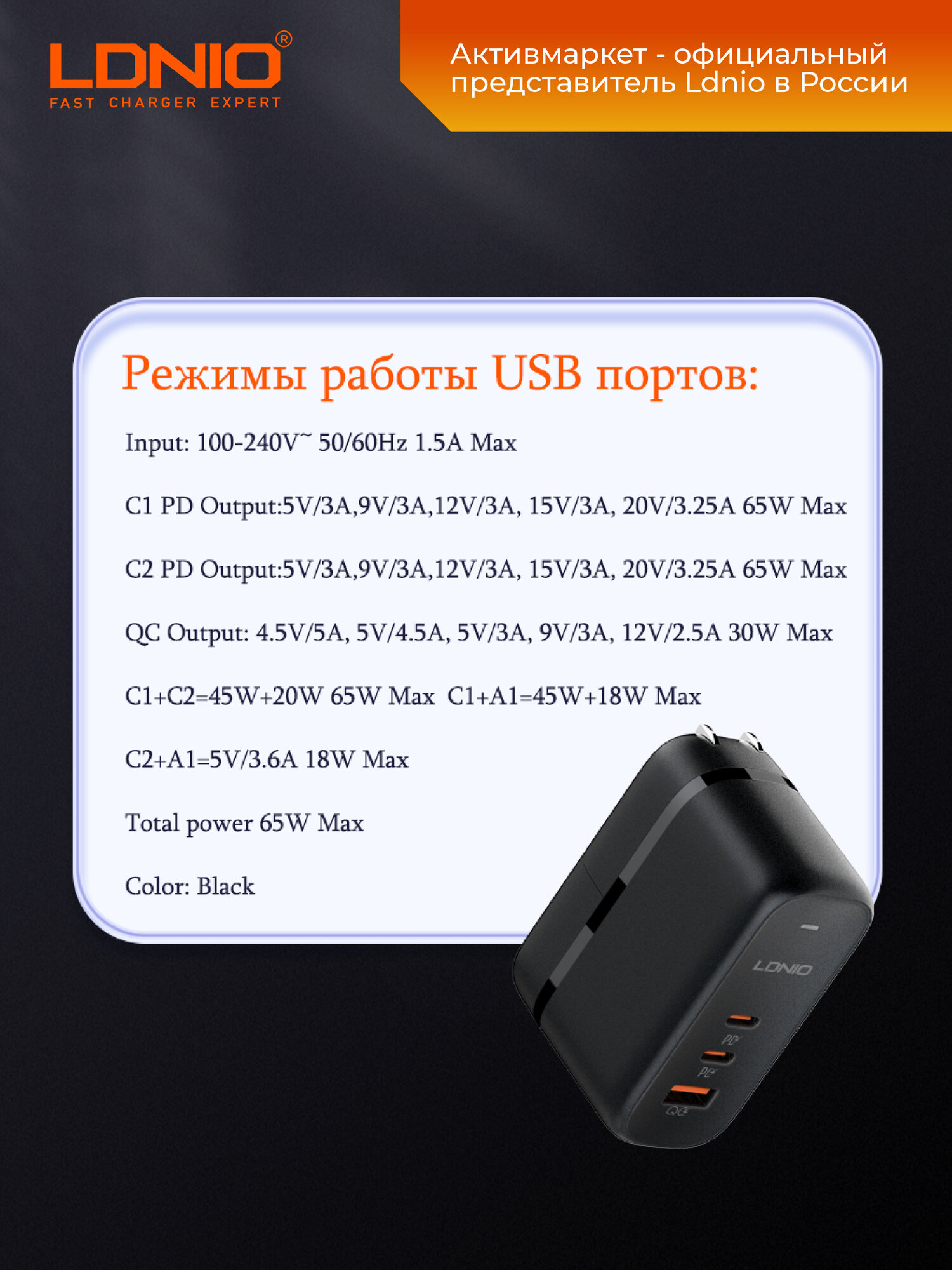 Отзывы на LDNIO Q366 быстрое зарядное устройство для телефона и ноутбука GaN 65W, 3 USB, кабель Type-C в комплекте
