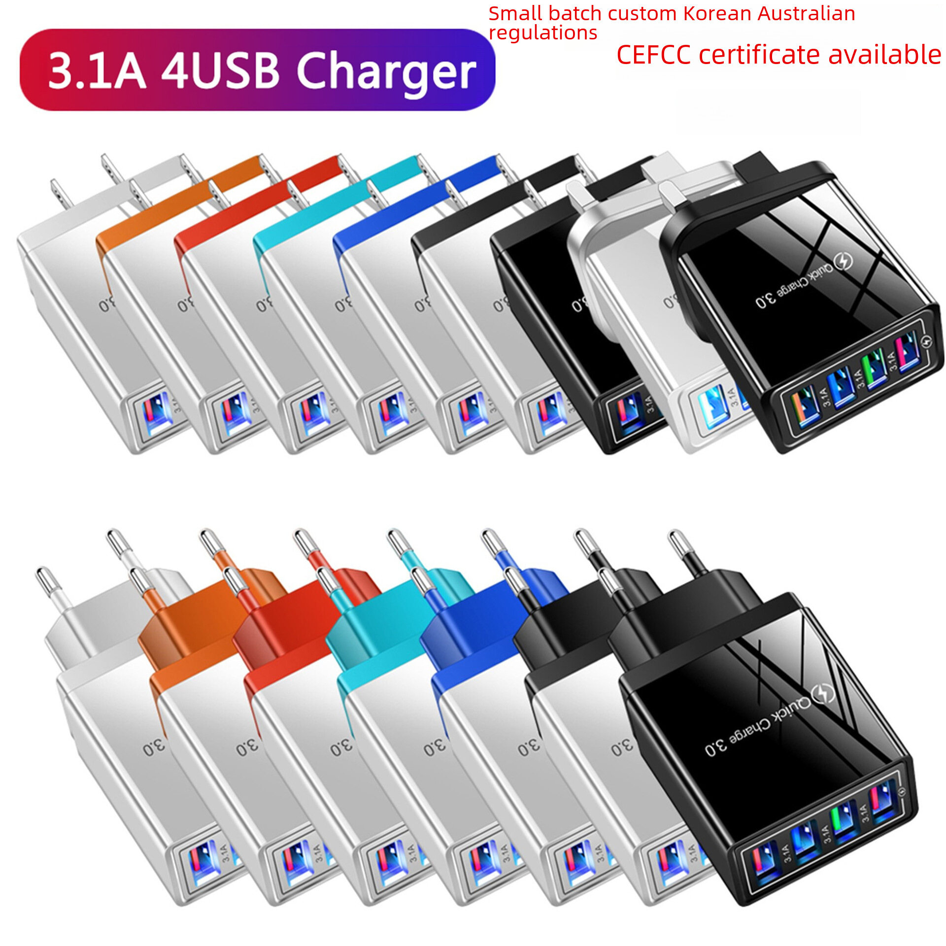 Зарядное устройство, 4 USB, 3A, для телефона, цветное, американское/европейское 379 ₽