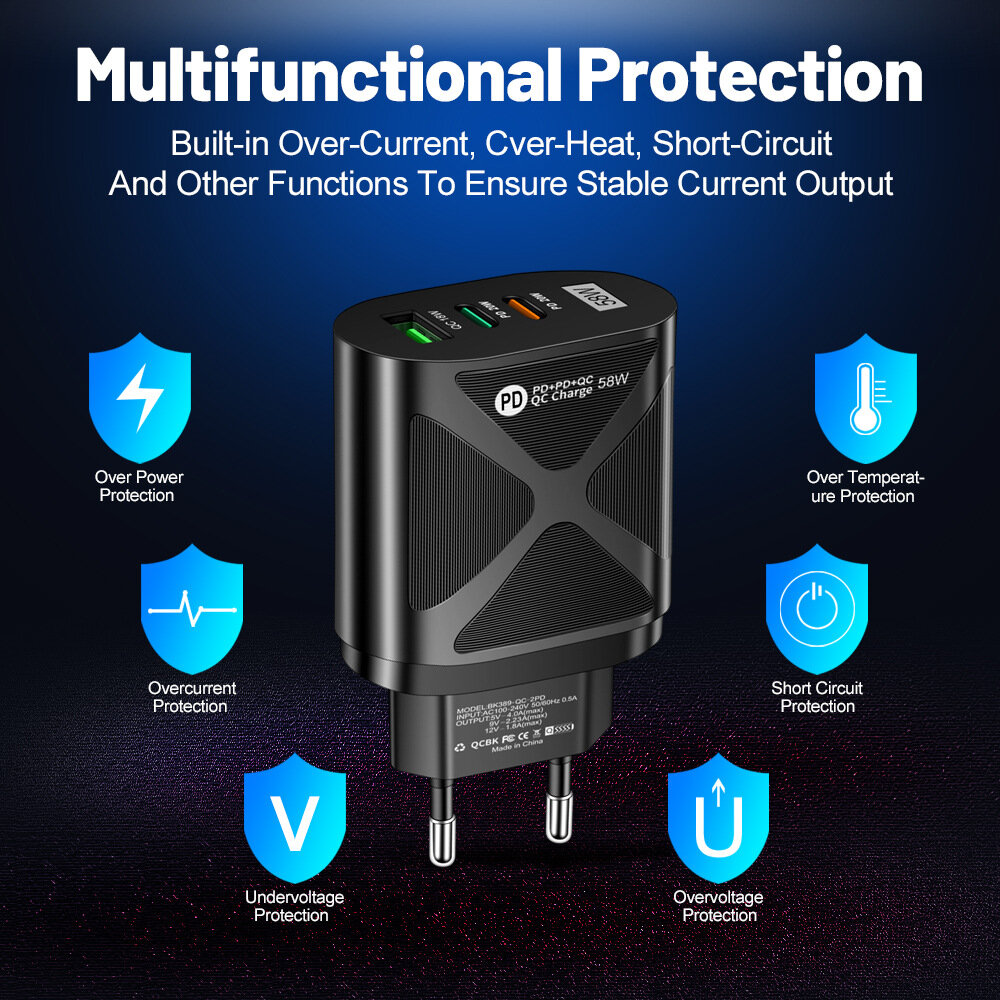 Зарядное устройство 58 Вт, для быстрой зарядки, 2PD+QC3.0, для мобильных телефонов информация: