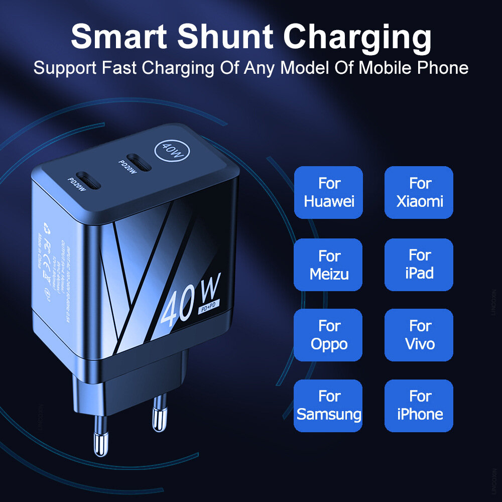 10 цен на Зарядное устройство Double PD Quick, 40Вт, для мобильных телефонов