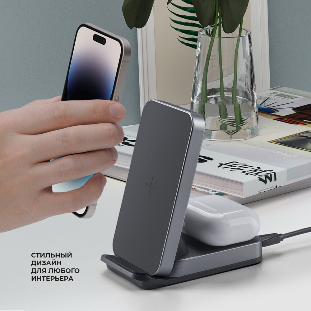 Отзывы на Беспроводная зарядка для телефона Charging Stand 2 в 1, 20Вт, черный, Deppa 24027-OZ/ Без заводской упаковки