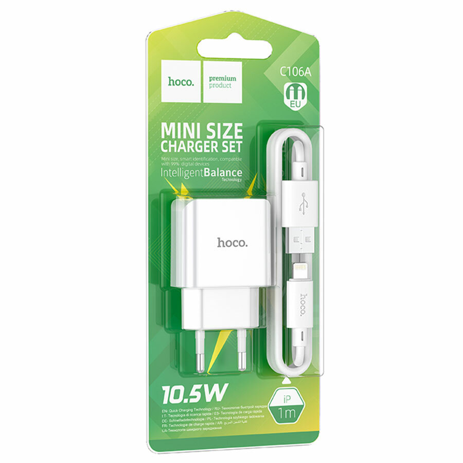 Сетевое зарядное устройство Hoco C106A, 10.5W, белый + Apple Lightning 1м информация: