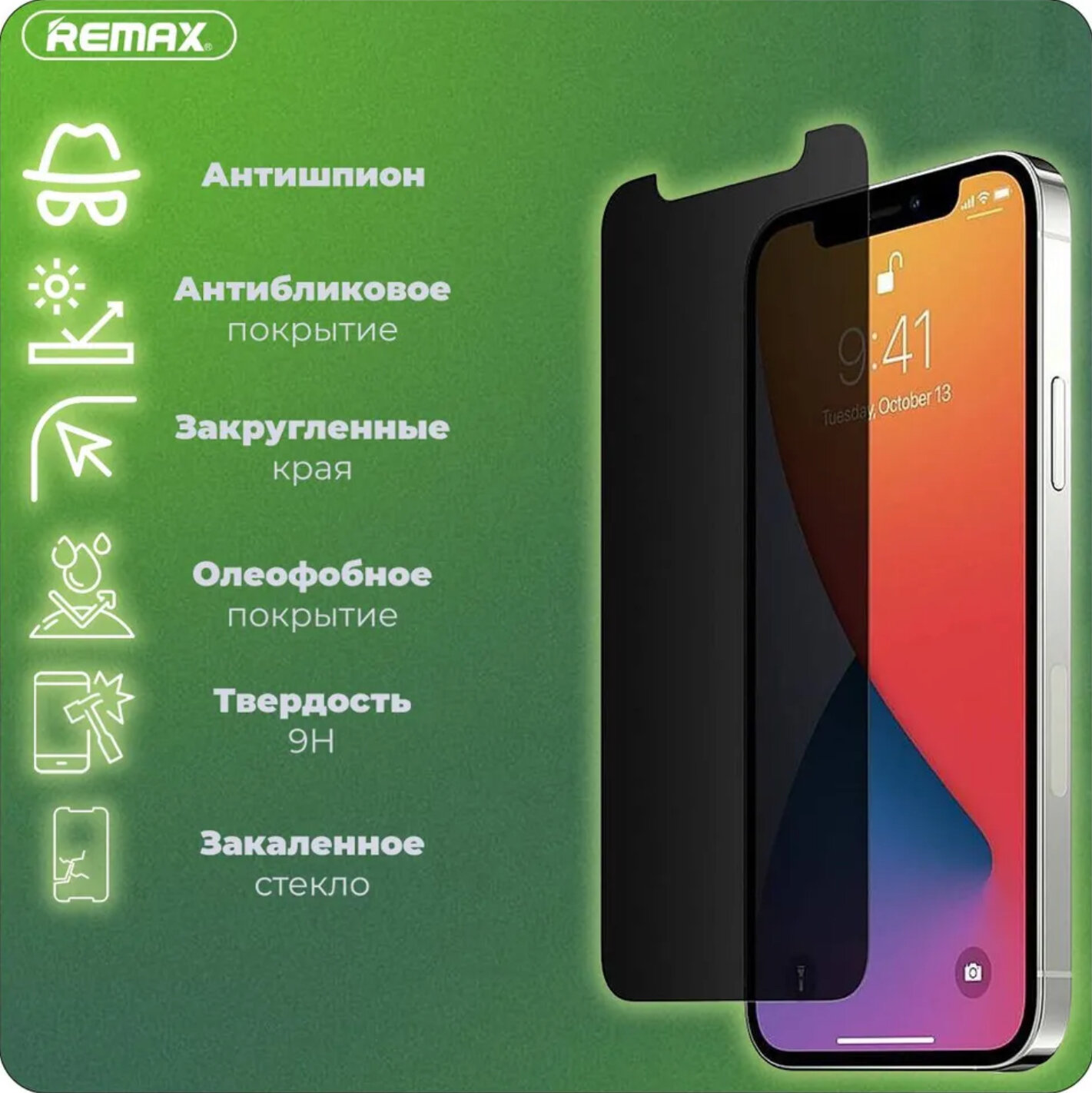 Защитное стекло АНТИШПИОН Remax для Apple iPhone 15 Pro/Айфон 15 Про 6.1" (GL-27) информация: