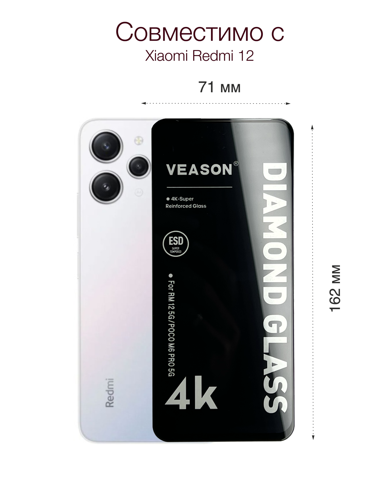 Отзывы на Защитное стекло VEASON для Xiaomi Redmi 12 / 6.79 дюйма (с олеофобным покрытием на ксиоми редми 12)