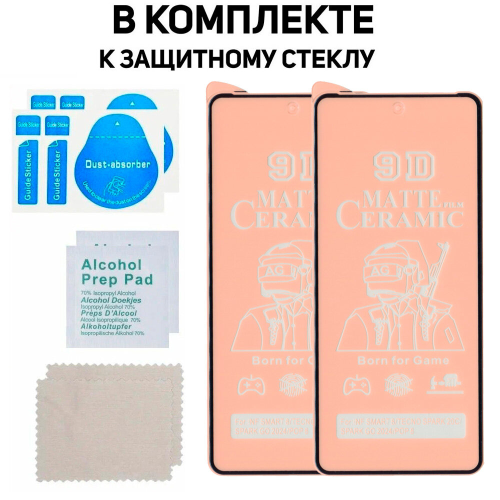 10 цен на Защитная керамическая пленка-стекло для Tecno SPARK GO 2024, комплект 2 шт, 9D, матовая, с черной рамкой