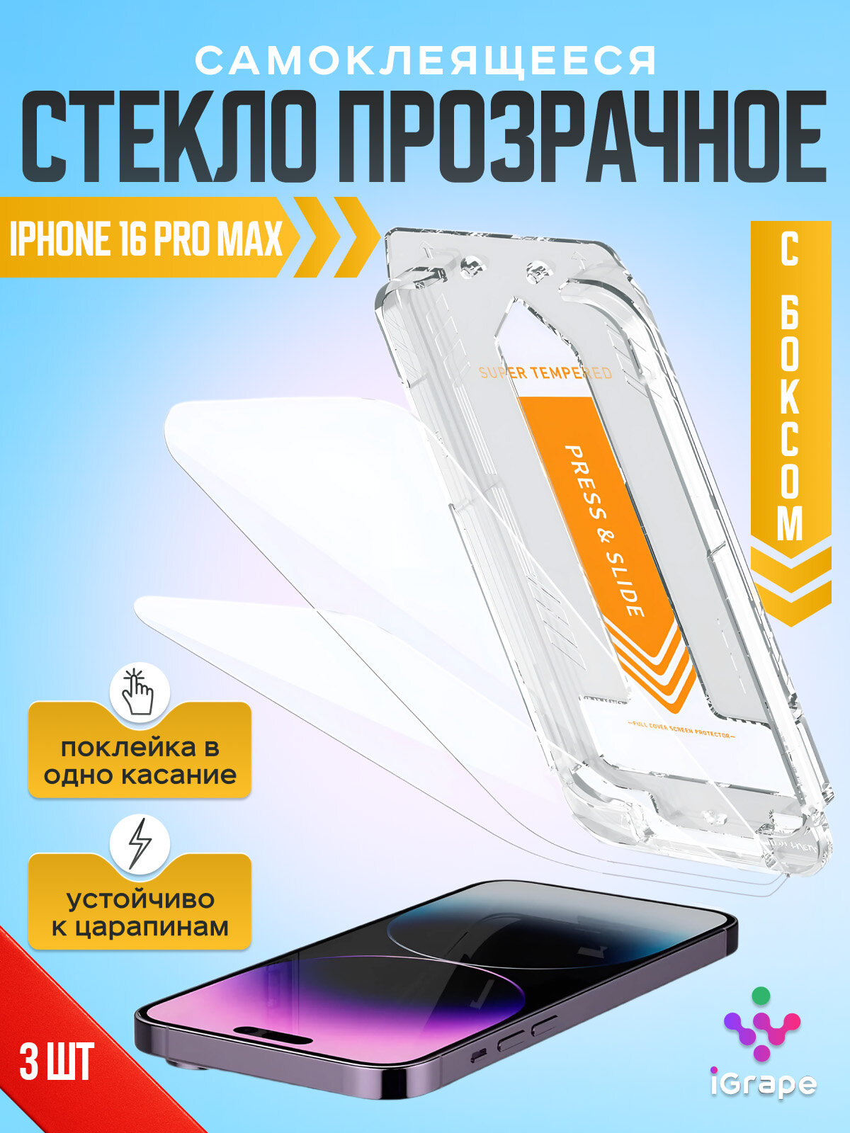 10 цен на Стекло с боксом 3 шт iPhone 16 Pro Max (Прозрачное) / стекло на айфон 16 про макс