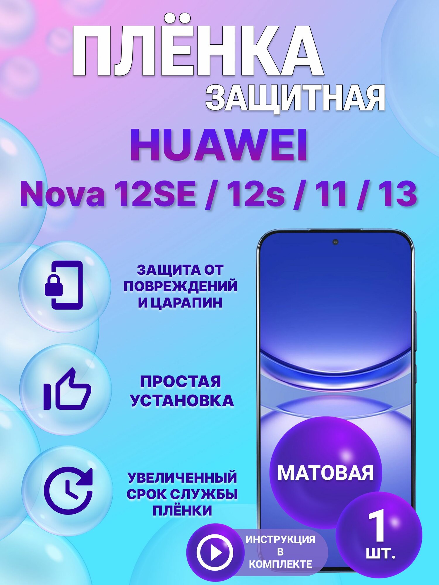 Матовая гидрогелевая полиуретановая пленка на HUAWEI nova 12SE, 12s, 11, 13/Хуавей Нова 12се, 12с, 11,13 информация:
