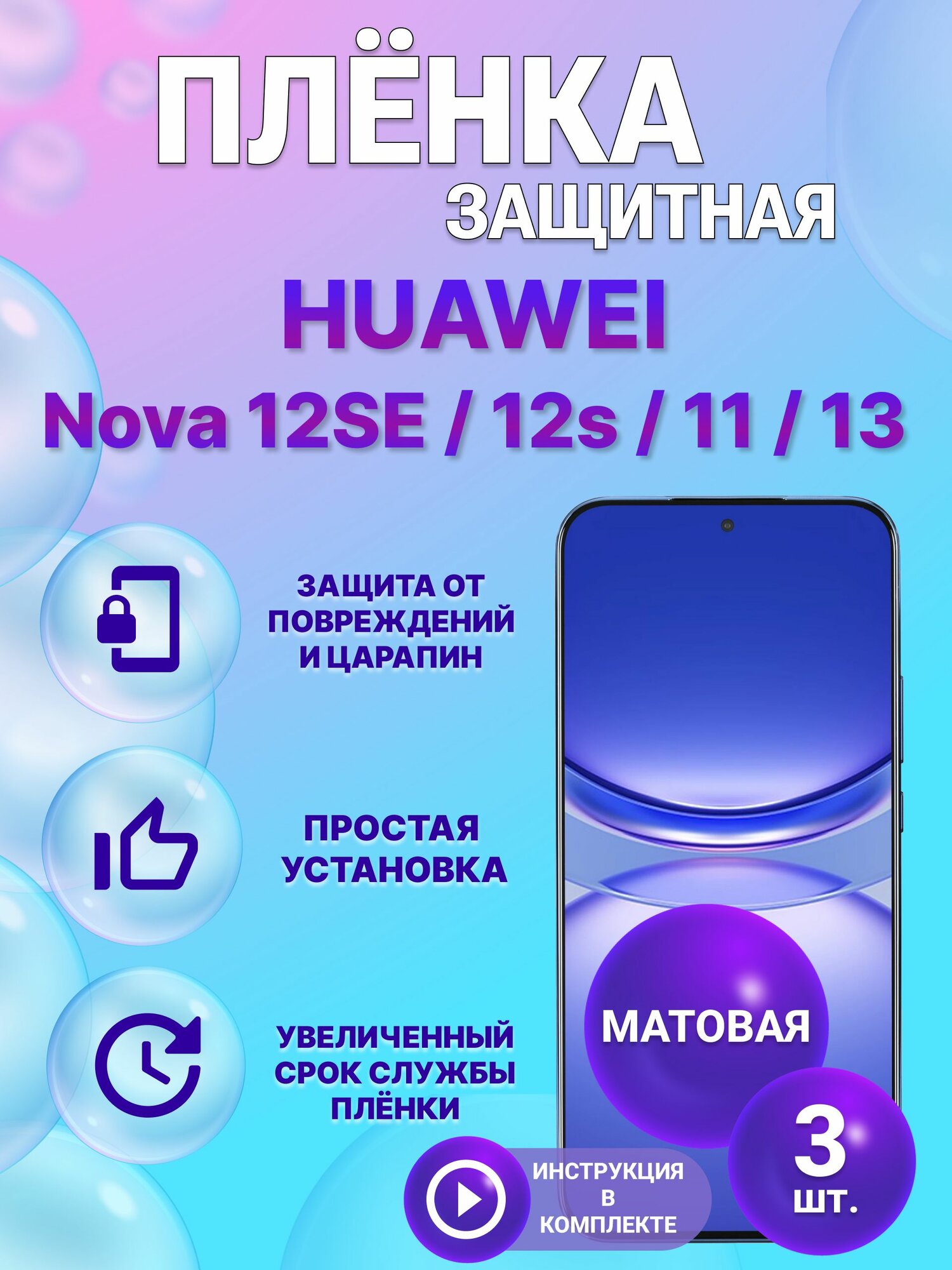 (Комплект 3шт.) Матовая гидрогелевая полиуретановая пленка на HUAWEI nova 12SE, 12s, 11, 13/Хуавей Нова 12се, 12с, 11,13 информация:
