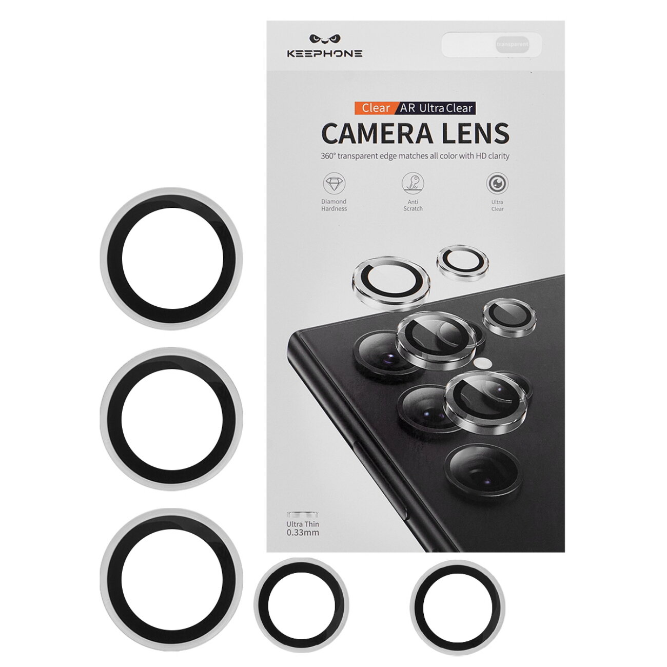 Отзывы на Защитные линзы для камеры Galaxy S25 Ultra KEEPHONE — Закаленное стекло 9H c покрытием AR из алюминиевого сплава-Серебро