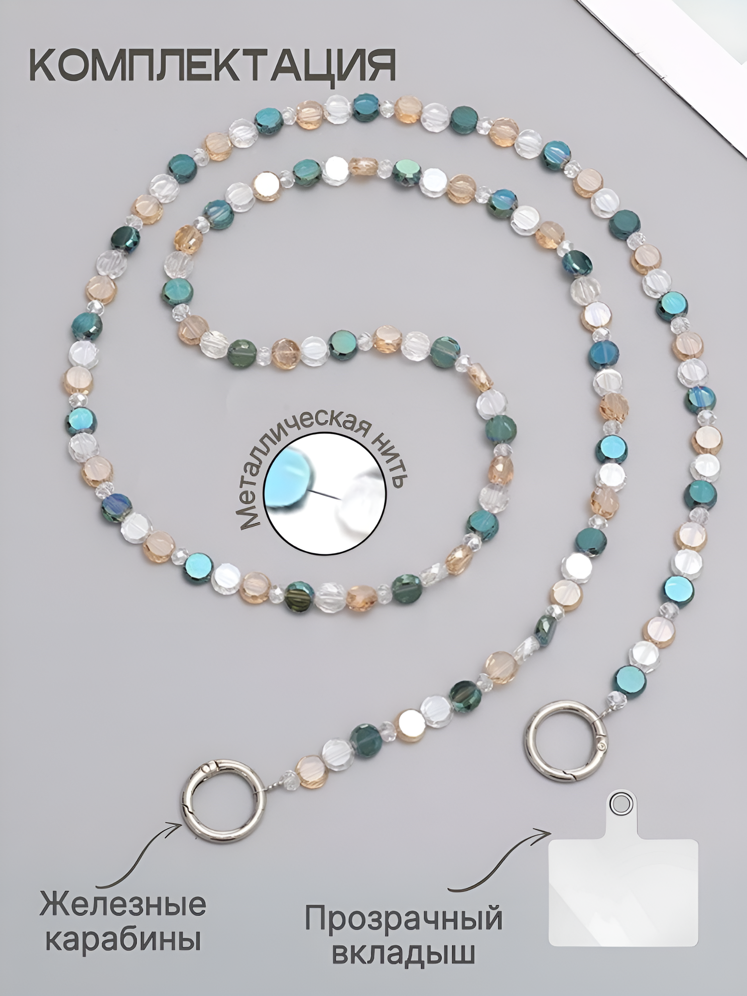 Шнурок цепочка для телефона с блестящими кристаллами и вкладышем под чехол в комплекте информация: