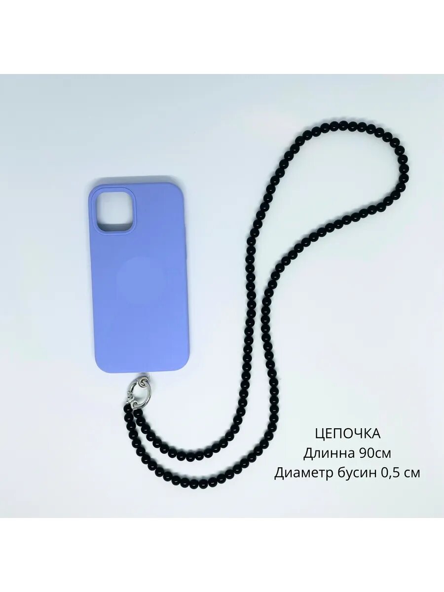 Шнурок подвеска для телефона с черными бусинами и вкладышем для чехла 962 ₽