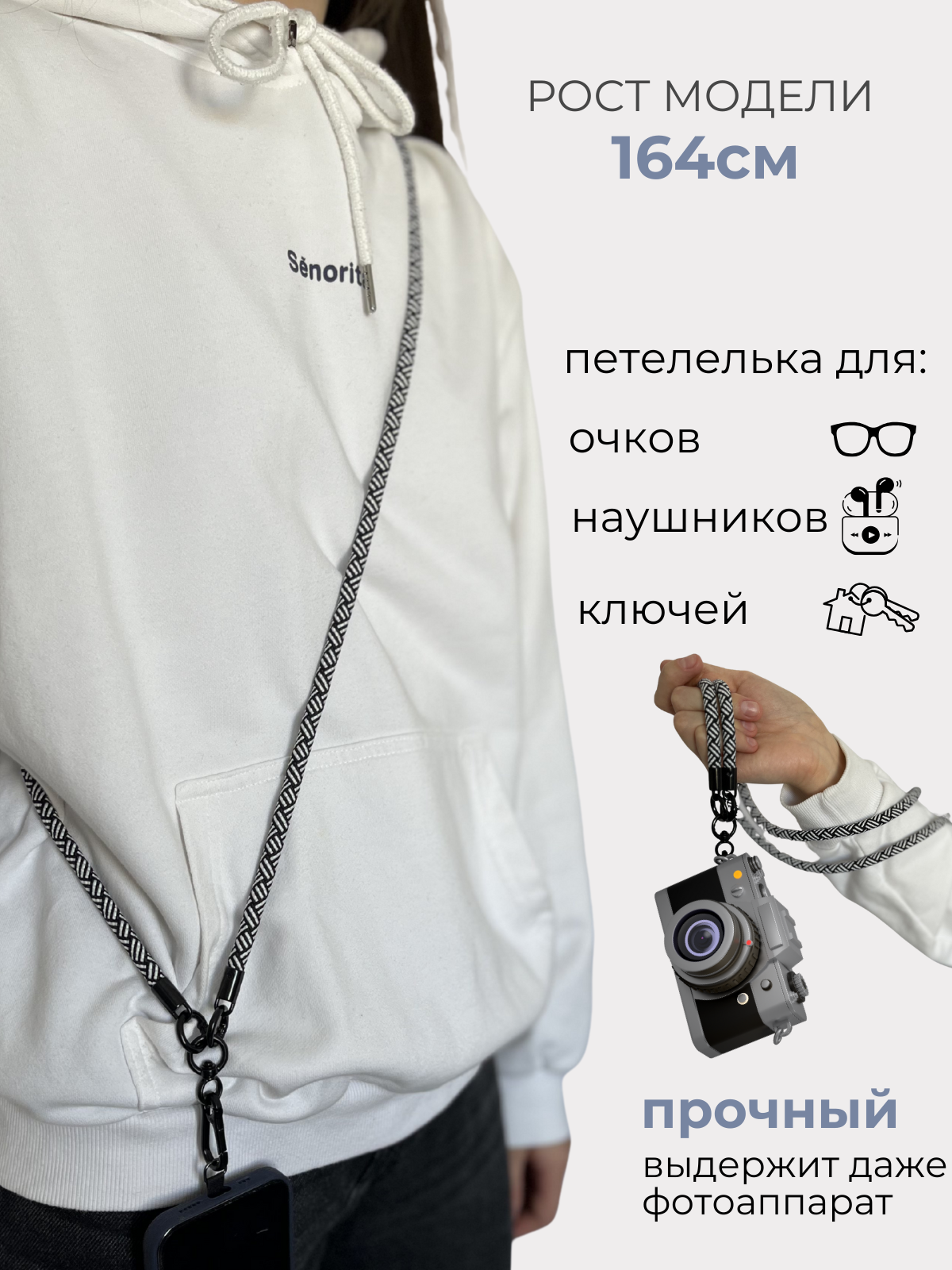 Отзывы на Шнурок для телефона через плечо черно-белый с узором 120 см толстый