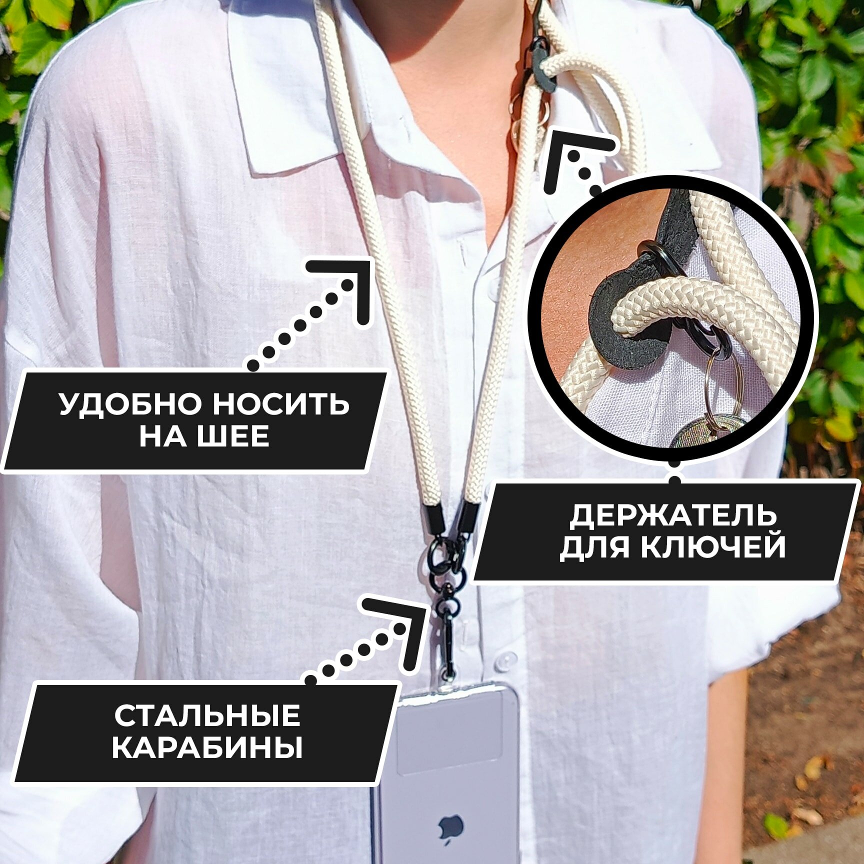 Шнурок для телефона и ключей, 120 см, бежевый информация: