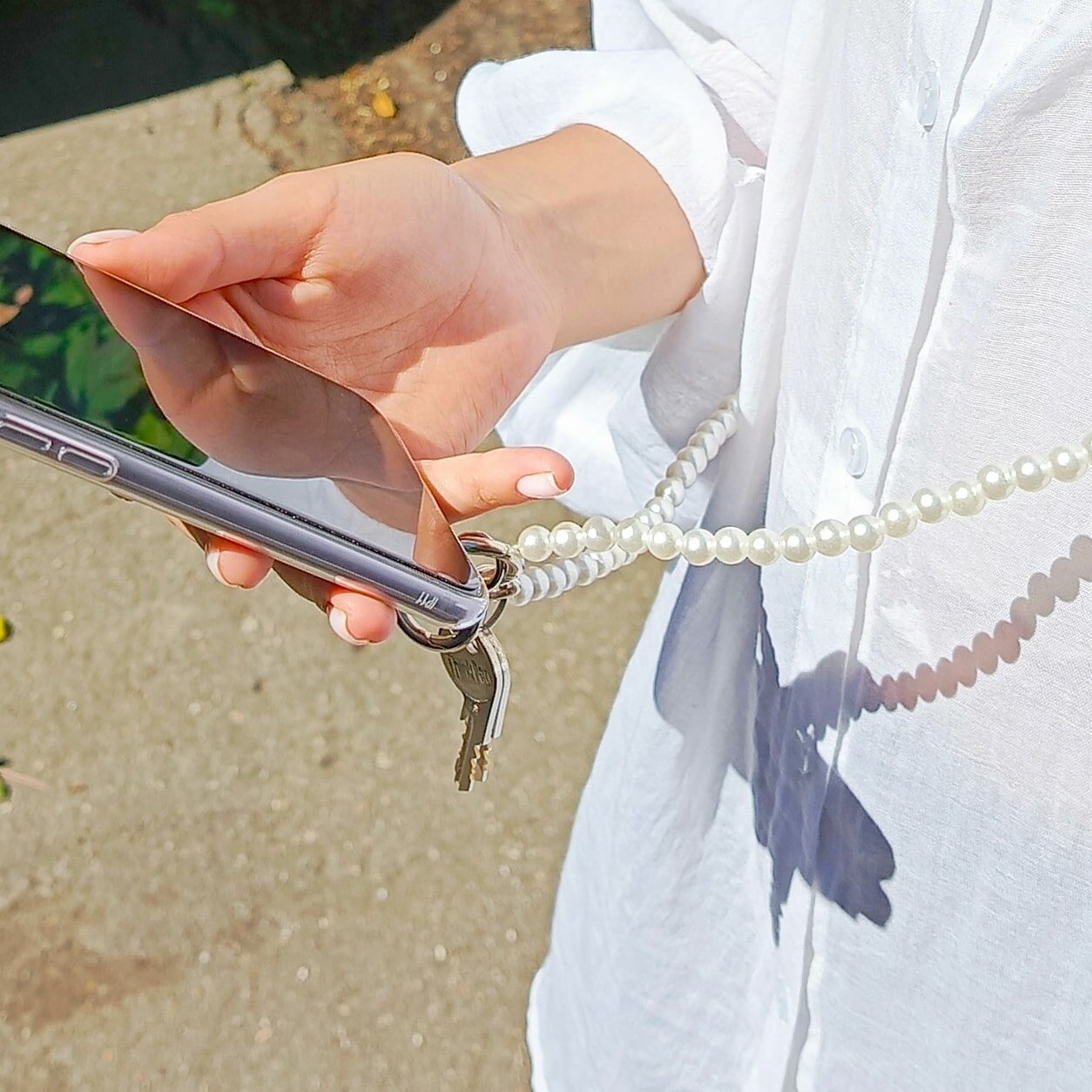 Шнурок для телефона и ключей, 110 см, жемчужины, белый информация: