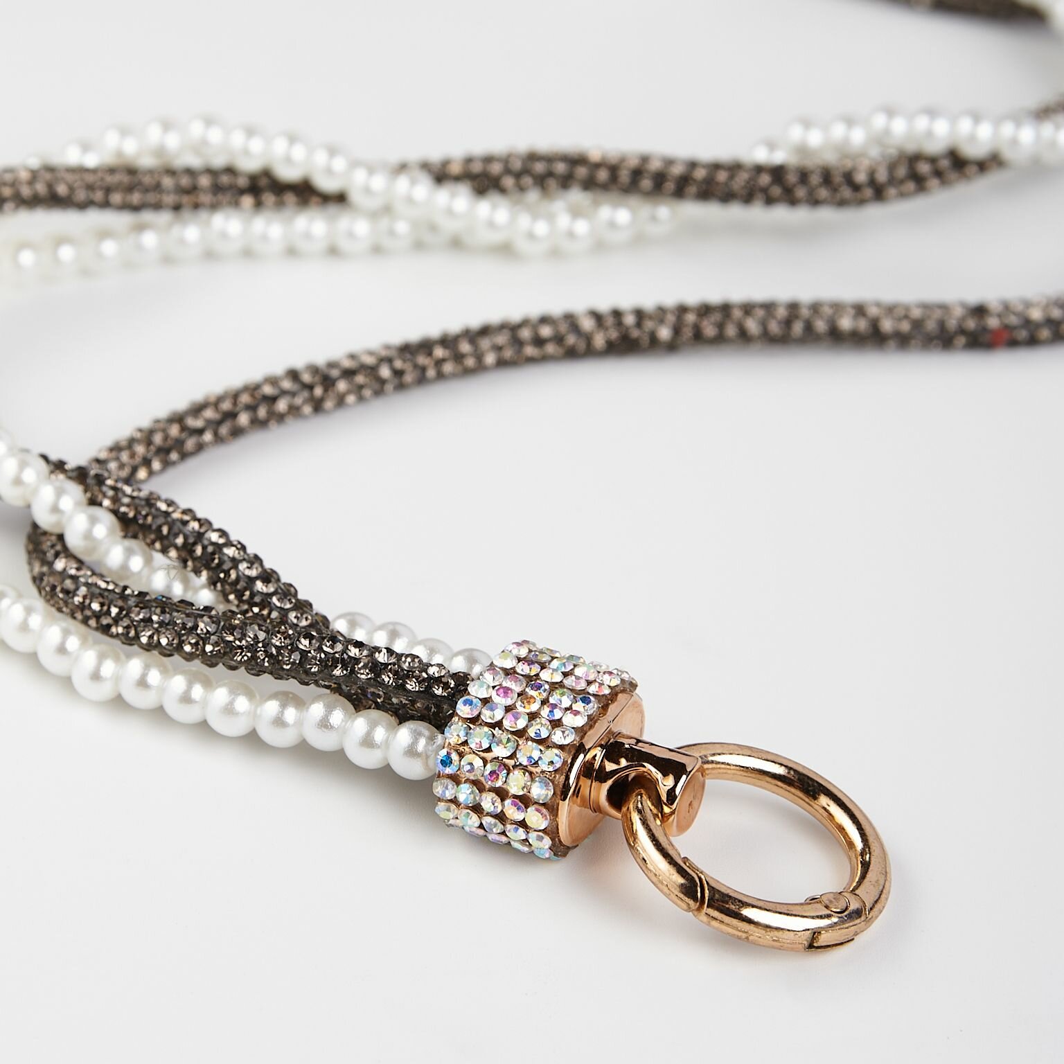 Цепочка для смартфона, бусины и жемчуг / Брелок -шнурок для смартфона, стразы и жемчуг / Серебристый 500 ₽