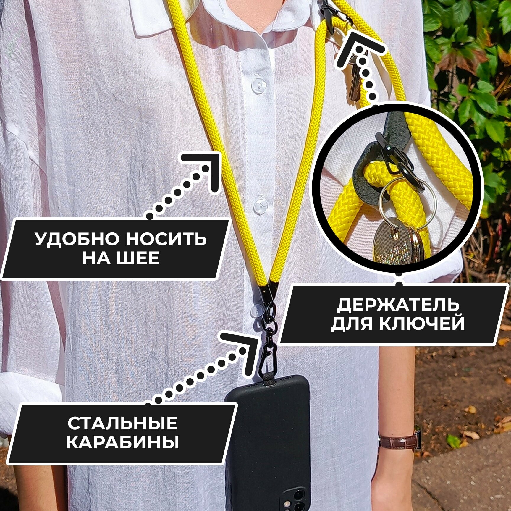 10 цен на Шнурок для телефона и ключей, 120 см, желтый неон