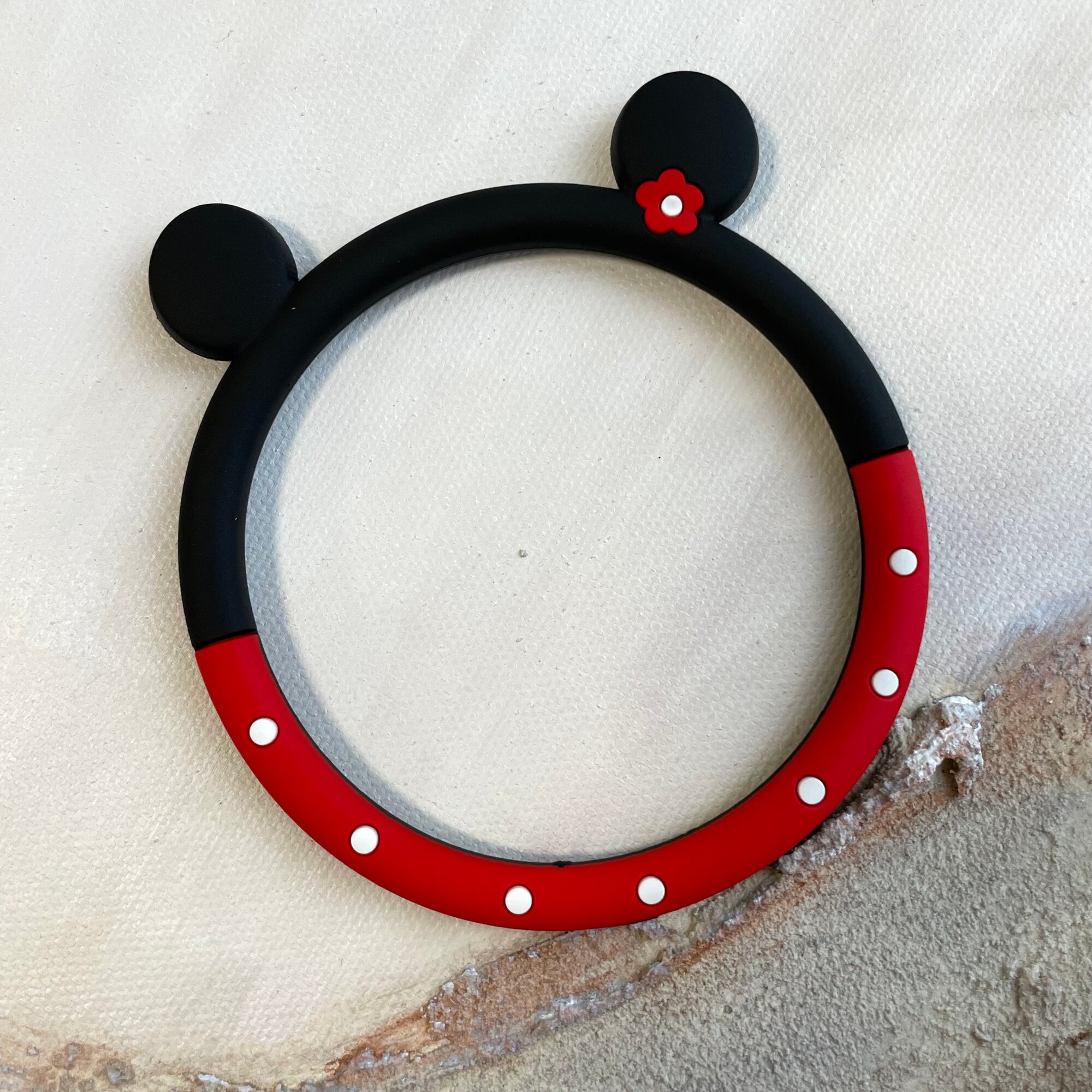 Шнурок-браслет мягкий для телефона "Кольцо Мини Маус", черный/красный, силикон, с креплением информация: