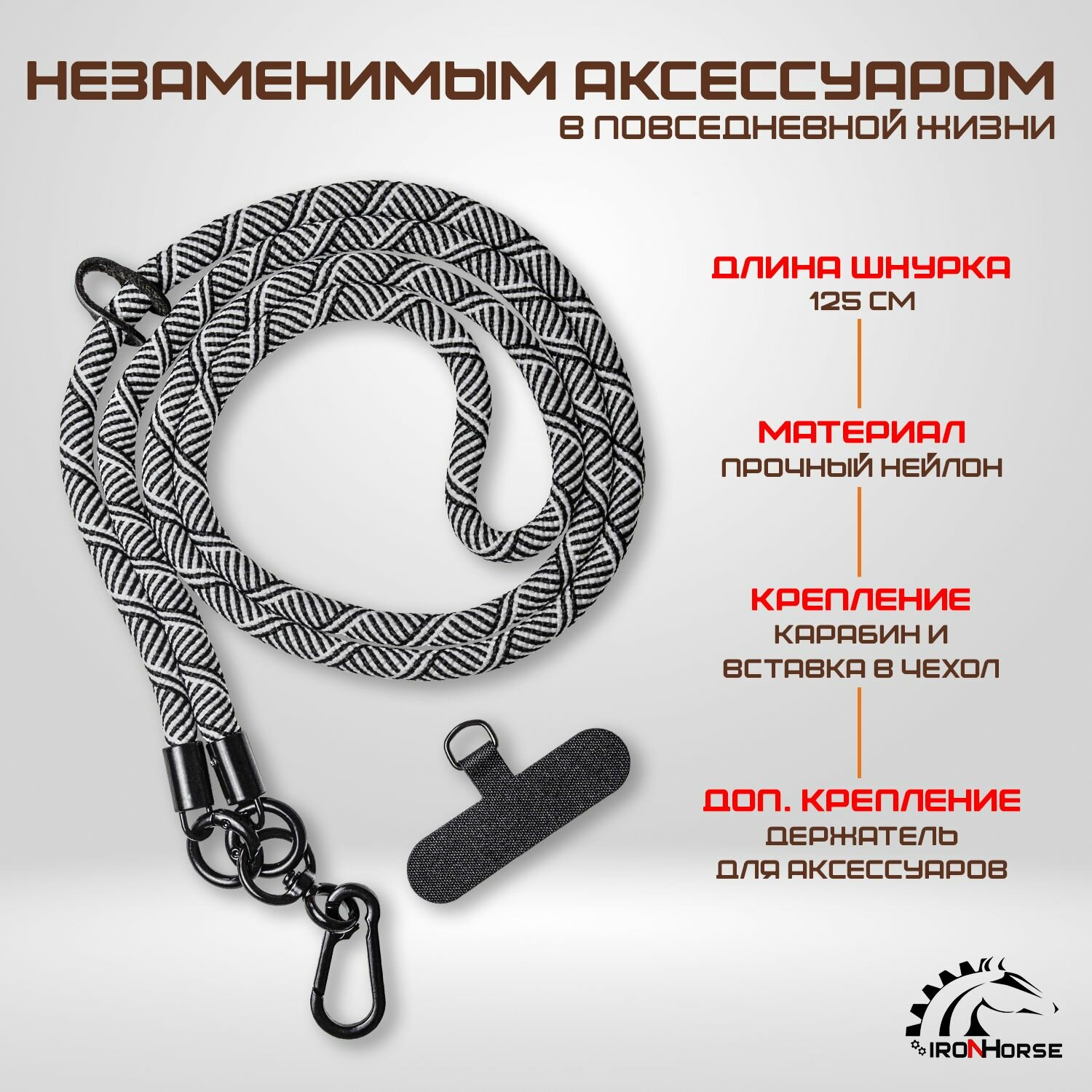 Шнурок для телефона кросс-боди через плечо универсальный (Бело-чёрный)
