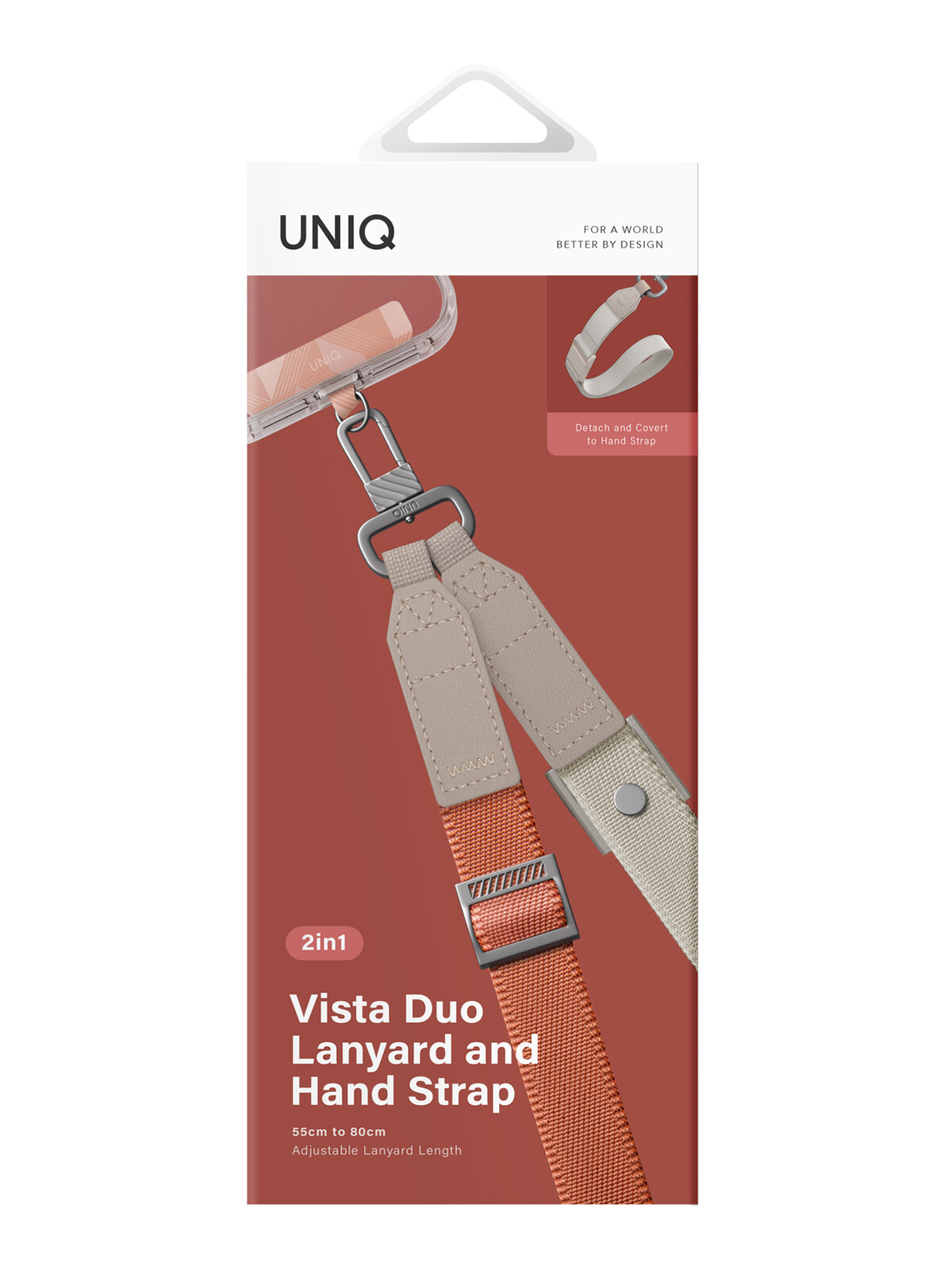 Uniq ремешок на шею/руку Vista Duo 2-in-1 Lanyard and Handstrap Terracotta/Beige информация: