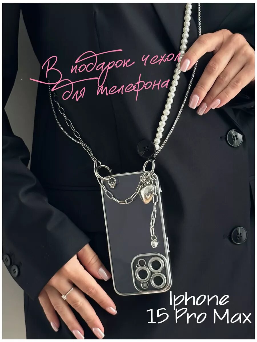 Цепочка на тело шнурок на телефон с жемчугом Iphone 15ProMax информация: