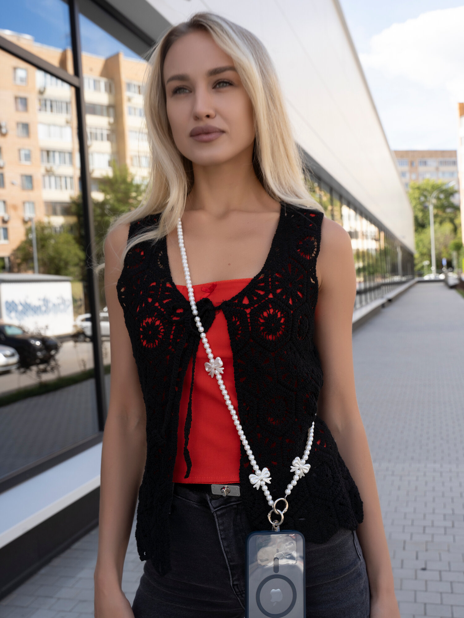 Шнурок для телефона кросс-боди через плечо универсальный (Бело-чёрный)