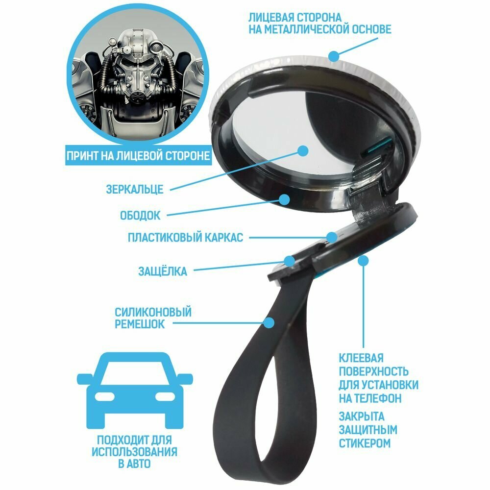 Кольцо-держатель с зеркалом Krutoff для телефона Фоллаут (Fallout) - Братство стали информация: