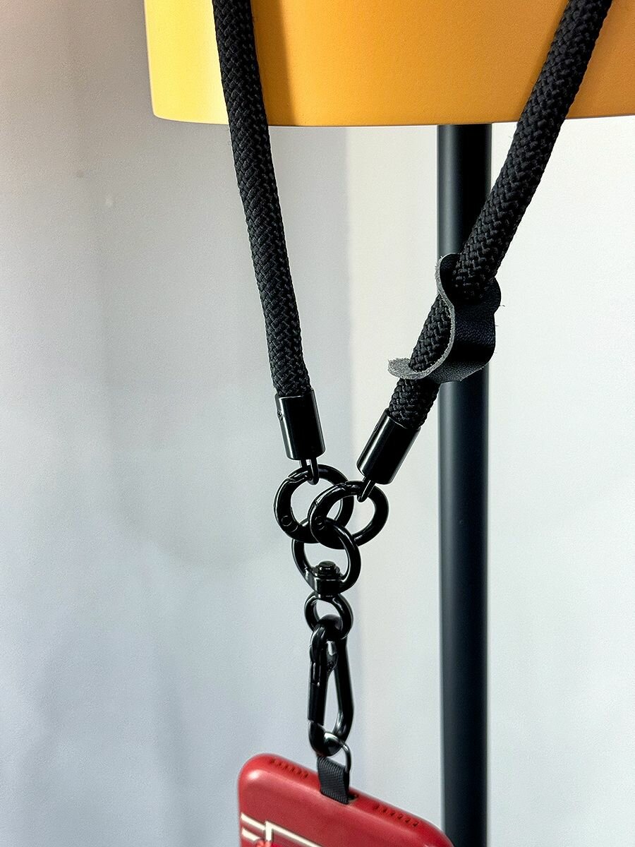 Шнурок для телефона тонкий через плечо с креплением для чехла, для ключей, бейджа, фотоаппарата. Черный информация: