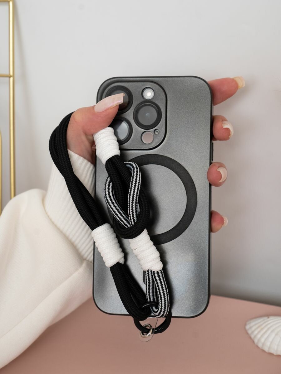 Шнурок для телефона кросс-боди через плечо универсальный (Бело-чёрный)