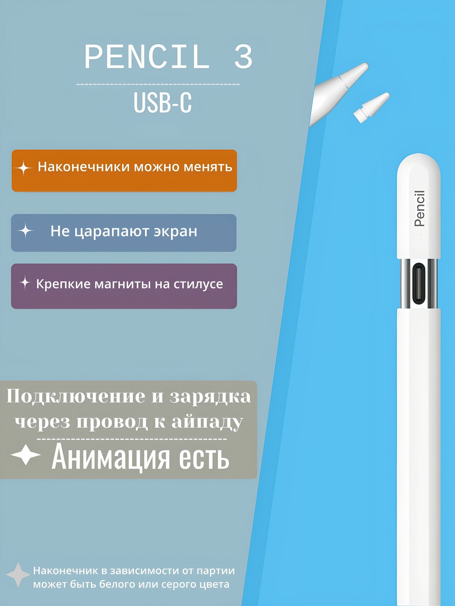 Pencil 3 usb-c для iPad / Стилус 3 юсб с для айпад информация: