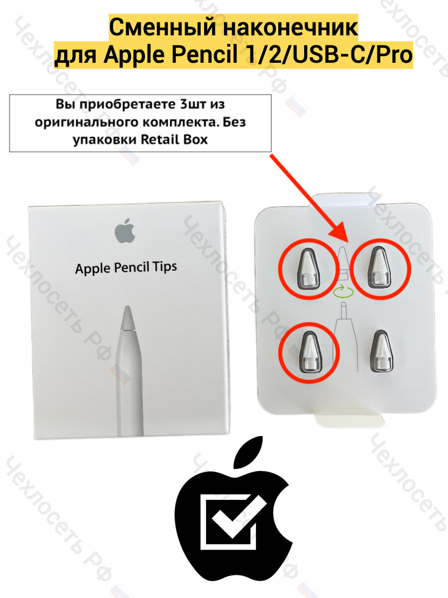 Оригинальный сменный наконечник Apple Tips для оригинальных стилус Pencil 1 / Pencil 2 / Pencil USB-C / Pencil Pro (3шт) информация: