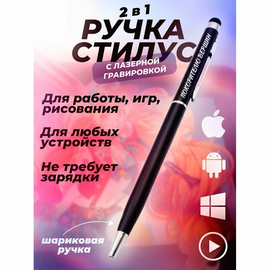 Ручка стилус для планшета и телефона, шариковая ручка подарочная с гравировкой. Покорителю вершин информация: