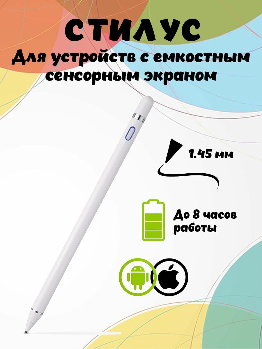 Емкостной стилус-ручка 1.45 мм с автоматическим выключением (8 часов работы) (зарядка Micro USB) для устройств iOS/Android информация: