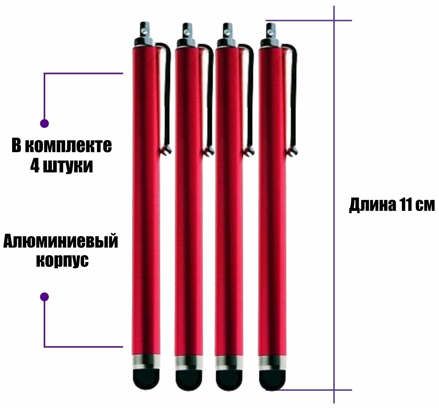 Универсальный стилус для рисования, для телефона, смартфона, планшета, красный, в комплекте 4 шт. информация: