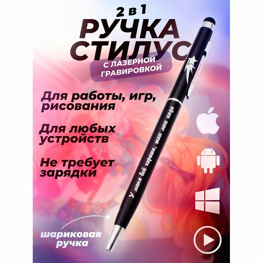 Ручка стилус для планшета и телефона, шариковая ручка подарочная с гравировкой. У меня всё хорошо, мне так надо информация: