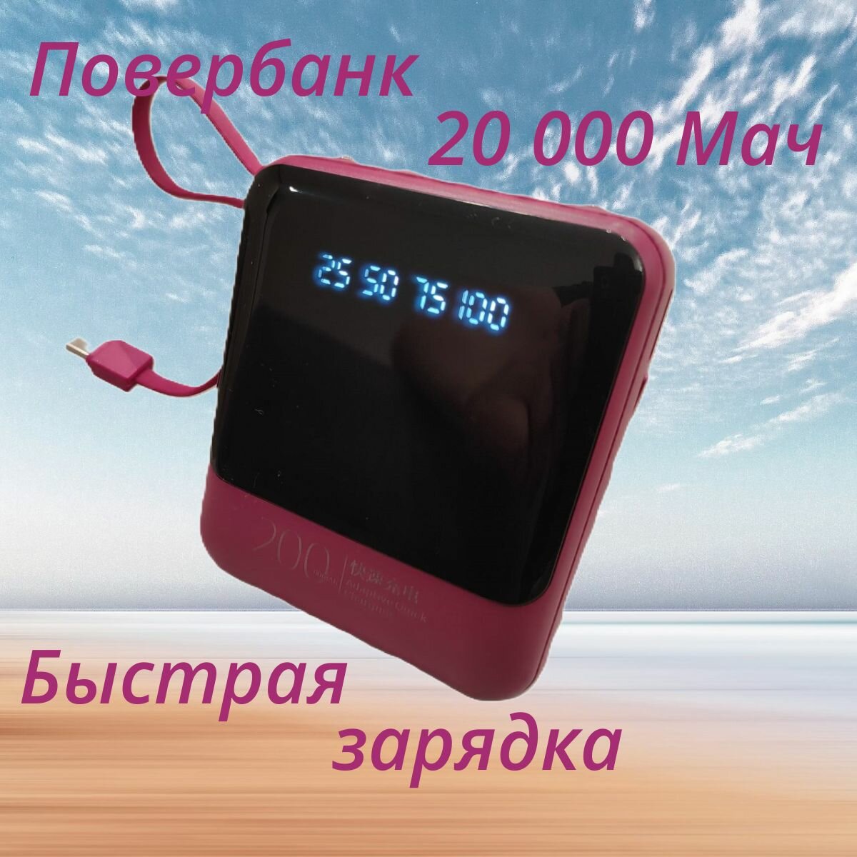 Внешний аккумулятор портативный повербанк портативная зарядка с проводами мощный 20000 мАч, фуксия(powerbank) информация: