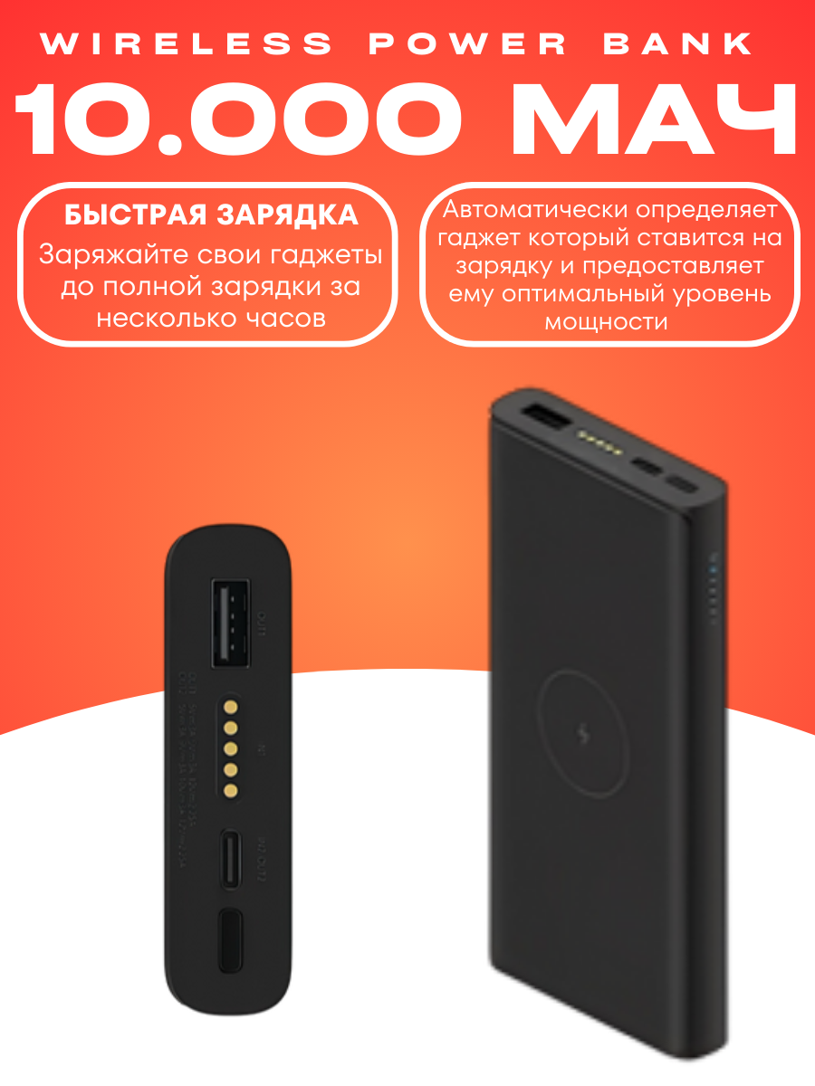 Внешний аккумулятор Xiaomi Mi Wireless 30W 10000mAh павербанк информация: