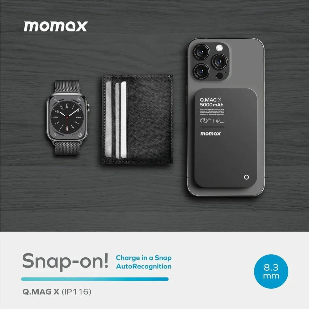 Беспроводной дополнительный аккумулятор (MagSafe) Momax Q.Mag X 5000 Ультратонкий Black 5 458 ₽