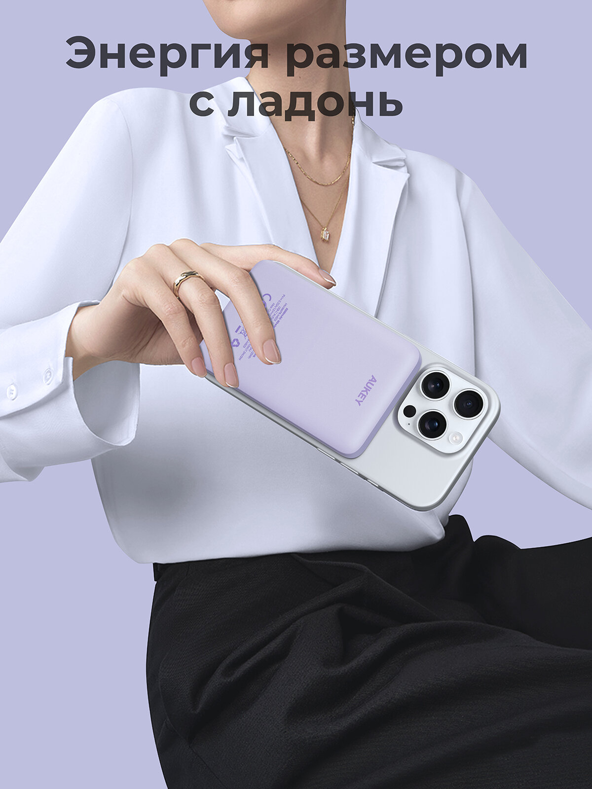 Внешний аккумулятор Aukey, 10 000 мАч, 20 Вт, MagSafe, фиолетовый (PB-MS04) 3 490 ₽