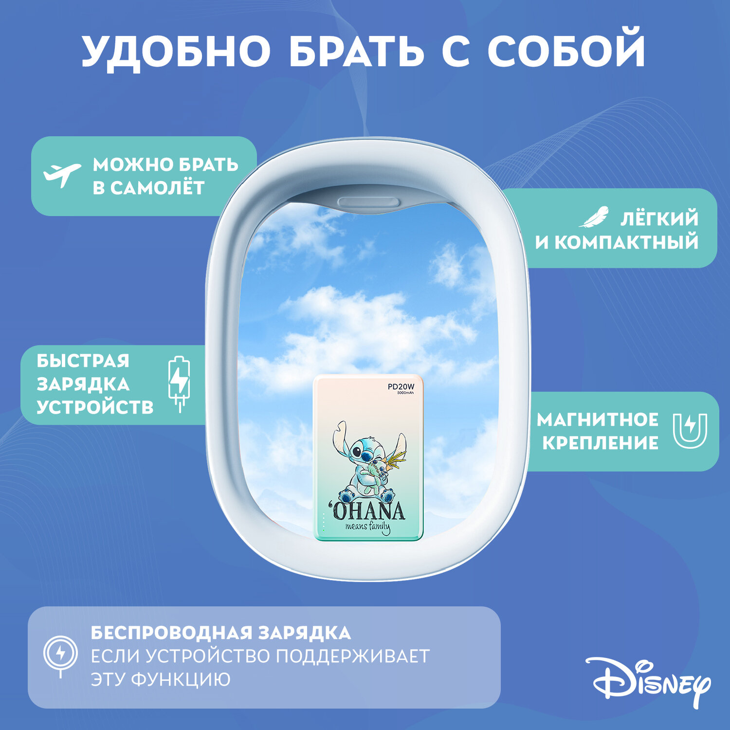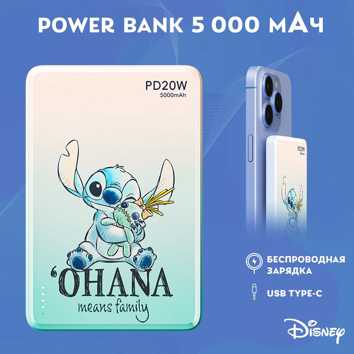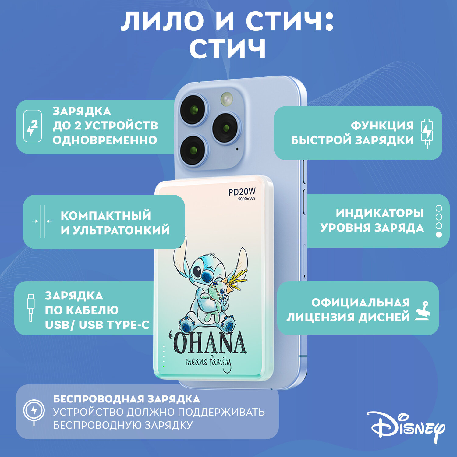 10 цен на Внешний беспроводной аккумулятор Дисней Лило и Стич: Стич, 5000 мАч, с индикатором заряда и магнитной фиксацией