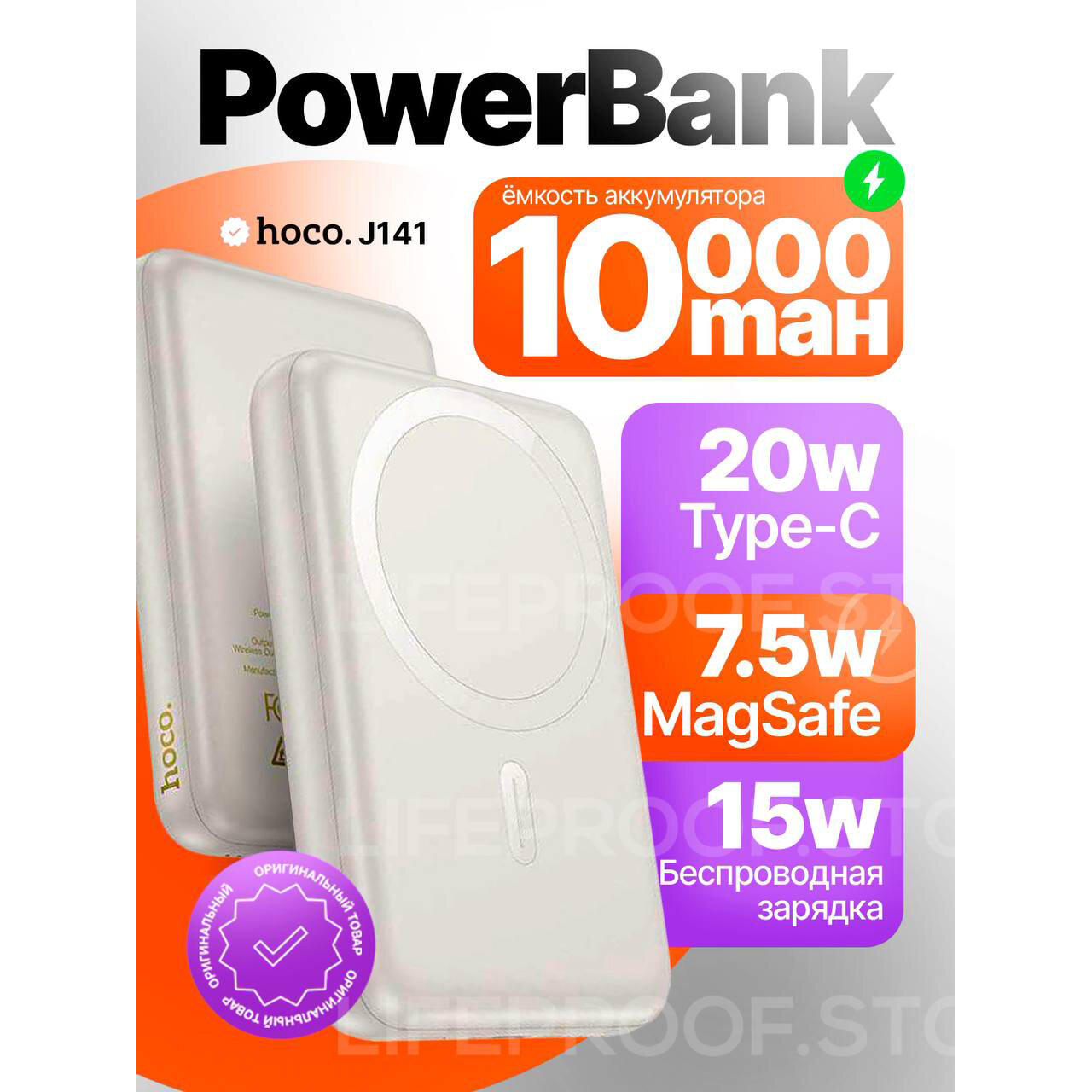 Отзывы на Внешний аккумулятор / повербанк Hoco J141 10000mAh Type-C 20W с беспроводной зарядкой и функцией MagSafe, цвет Белый