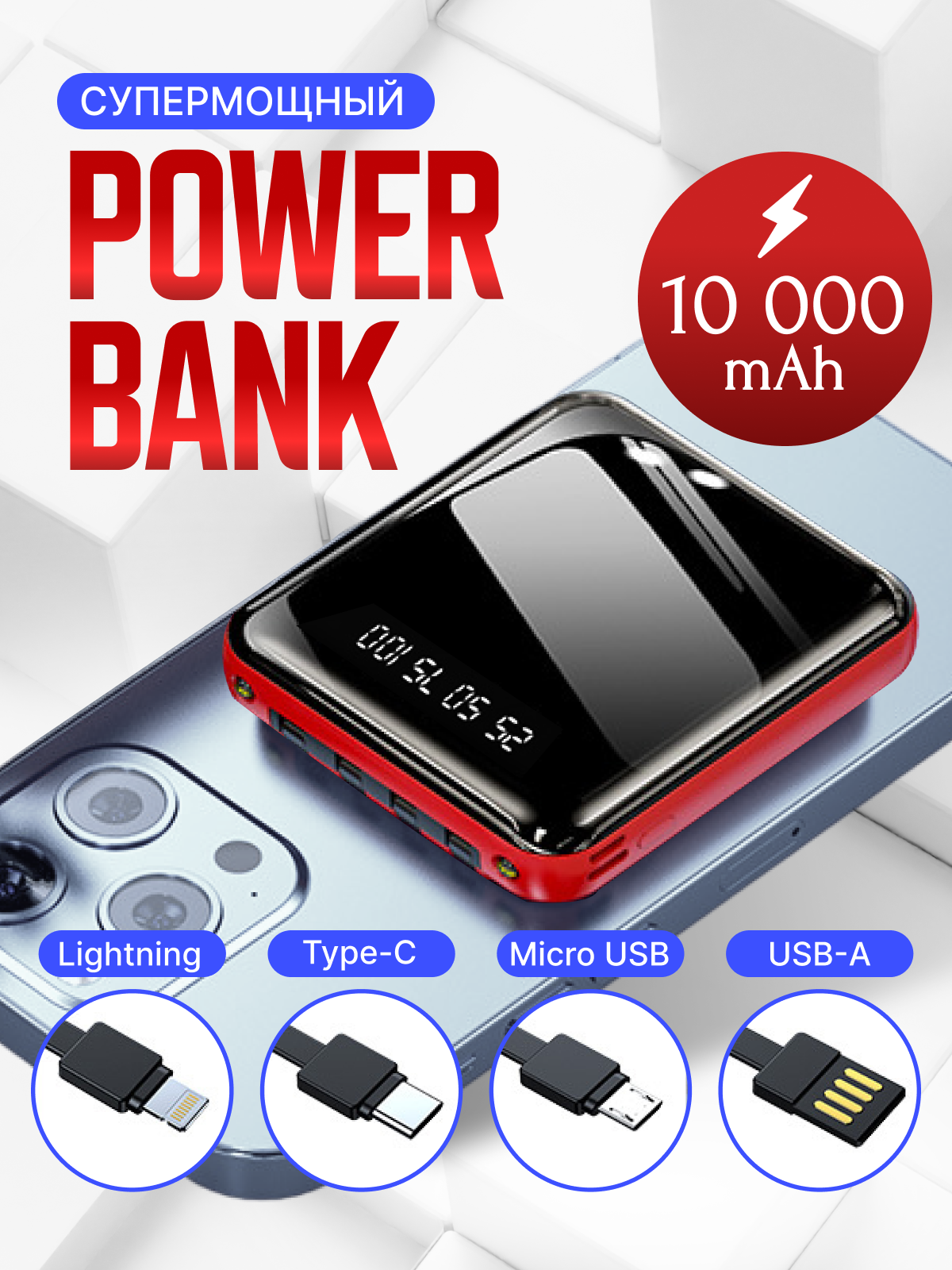 10 цен на Power bank, внешний аккумулятор "ZONDER STAUBER", 10000 mAh, 4 разъема, быстрая зарядка, красный